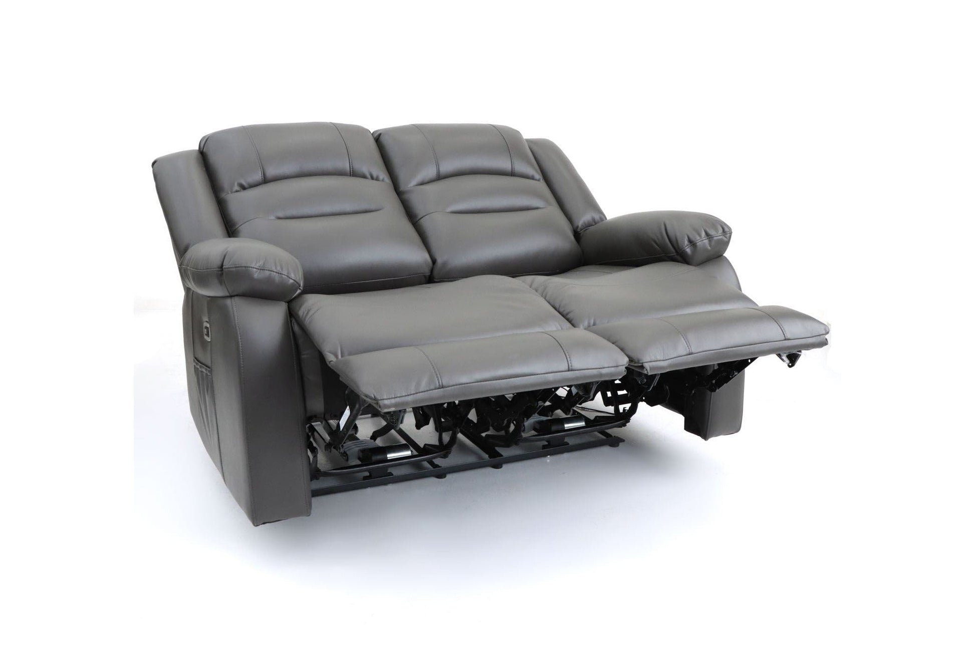 Experience ultimate comfort and style with the Alva Electric Recliner Sofa Grey 2 Seater. This sleek and contemporary piece offers a convenient recliner function, allowing you to effortlessly find your ideal level of relaxation. Its plush faux leather upholstery and generously padded armrests provide the utmost comfort. Plus, stay connected with a built-in USB-C charging port and enjoy added convenience with a drop-down table and side pocket for storing essentials.
