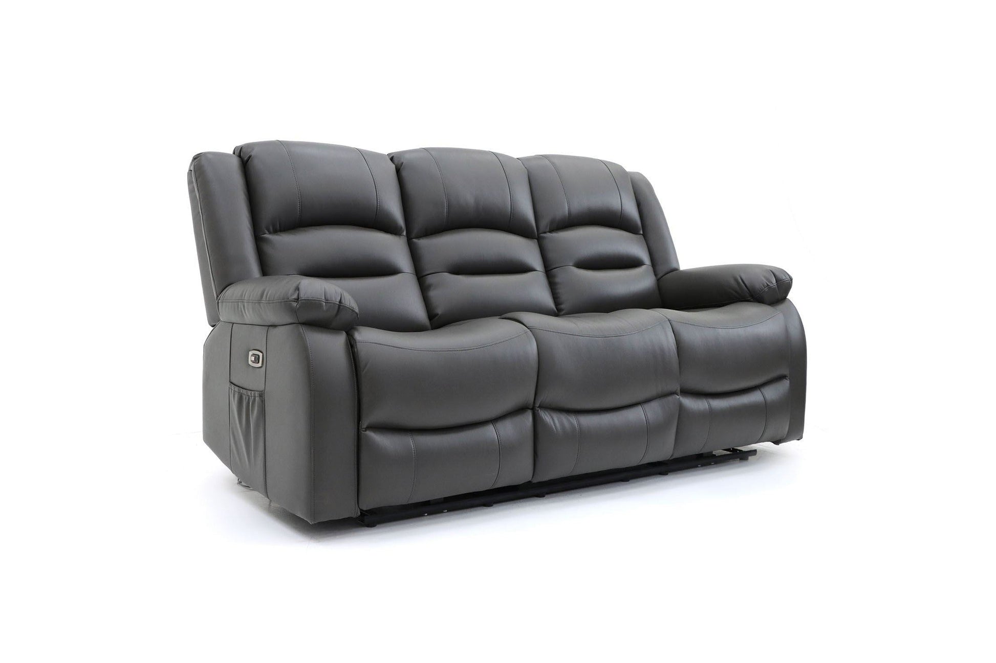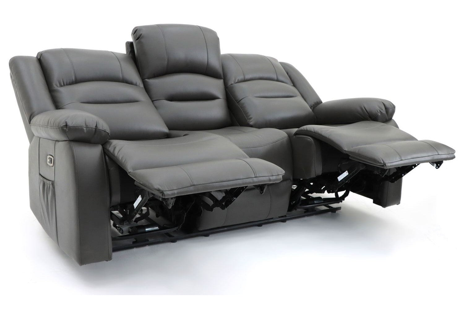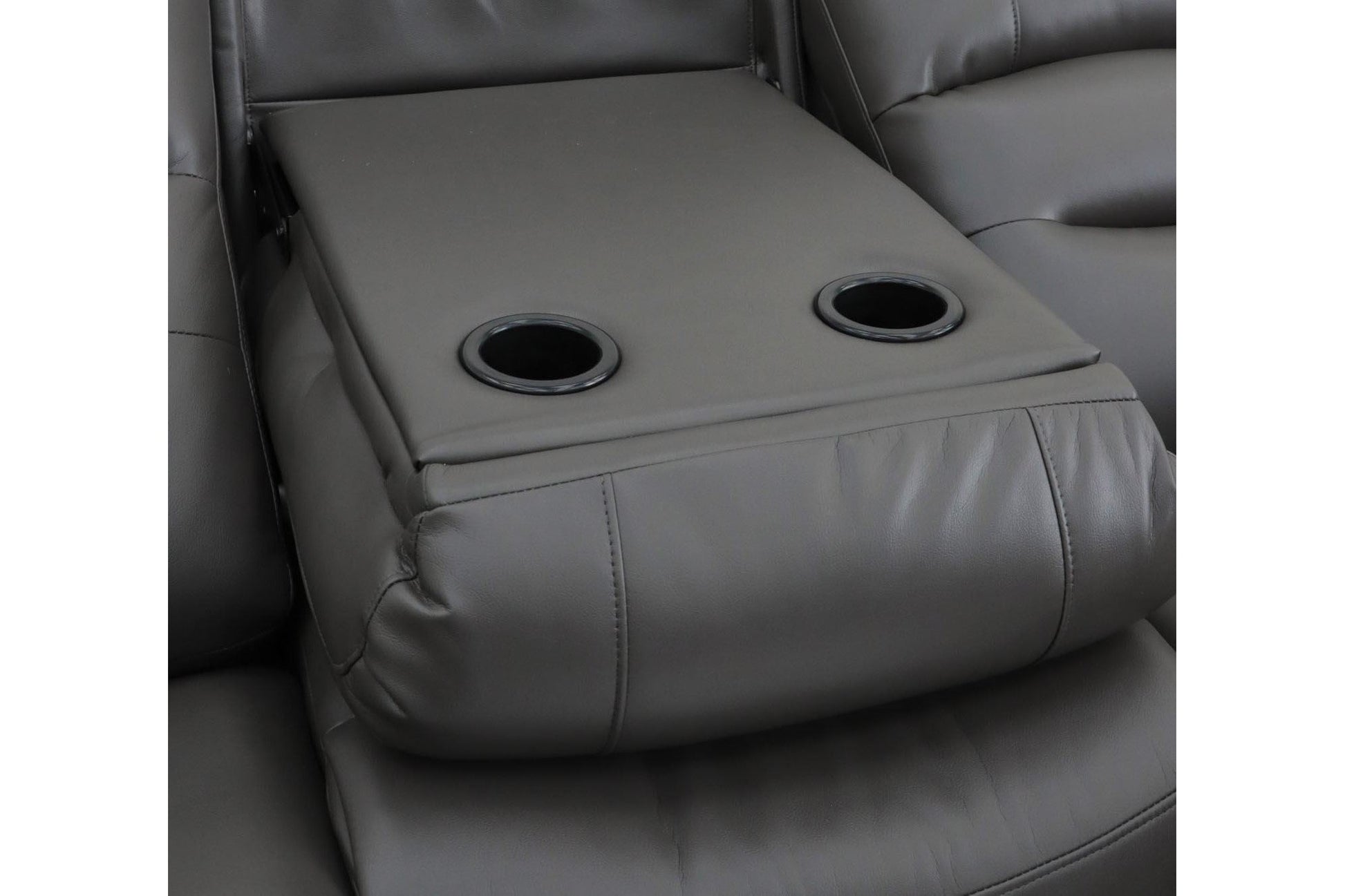 This Alva Electric Recliner Sofa in Grey boasts a contemporary and sleek design, along with an easy-to-use reclining mechanism for finding your desired level of comfort. The plush, faux leather upholstery and generously sized armrests provide additional coziness. It also includes a USB-C charging port, a convenient drop-down table with cup holders, and a practical side pocket for storing items like remote controls and magazines.