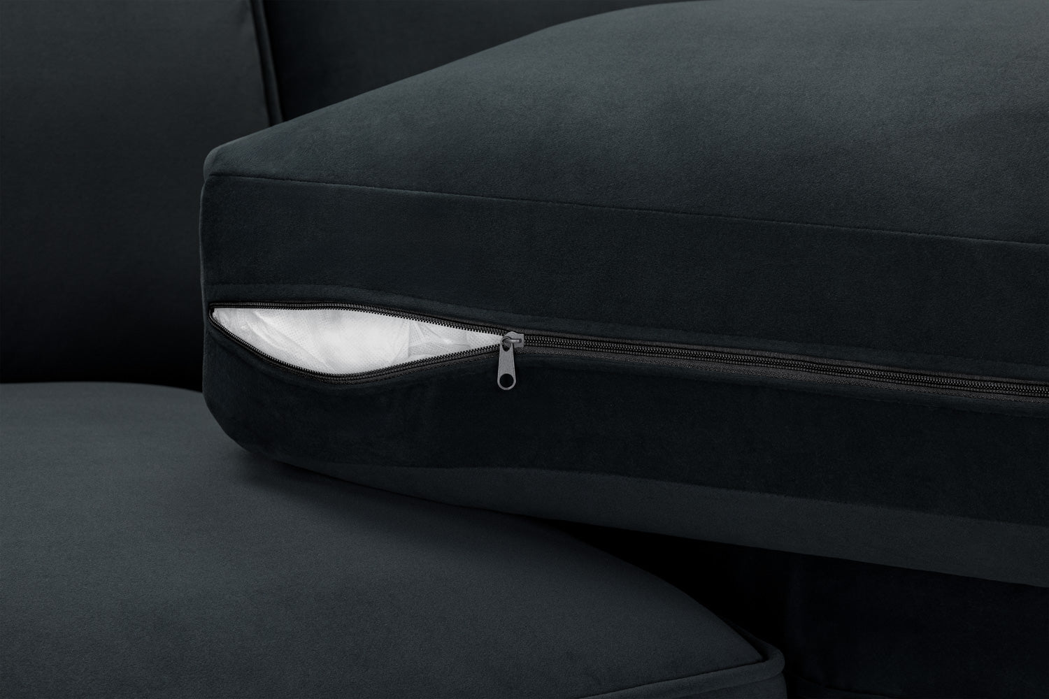 The luxurious slate plush velvet upholstery on the Belgravia Large U Shape Corner Sofa exudes elegance and style. The large moveable footstool allows you to create different configurations to suit your space and needs. By using separate comfortable cushions, you can customise your seating experience for maximum relaxation. The removable cushion covers make cleaning and maintaining the cushions a breeze.
