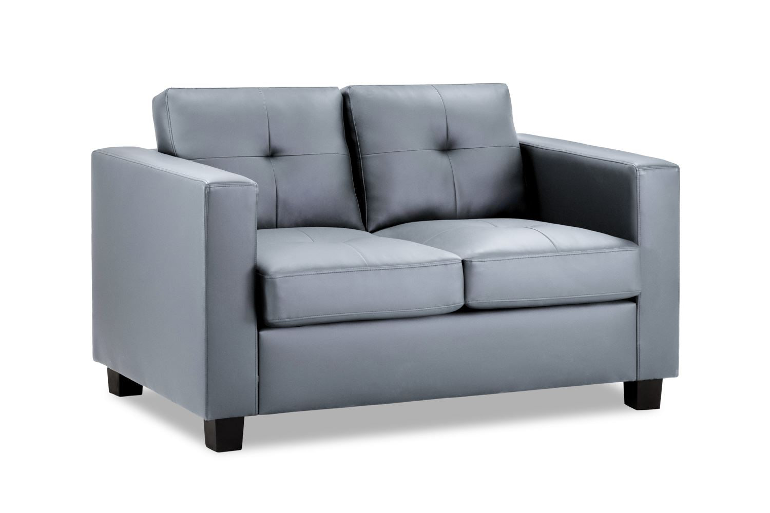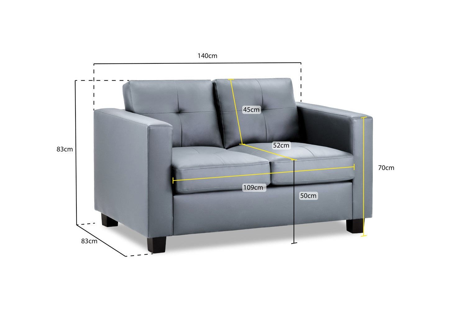 The Jerry 2 Seater in Grey features an almost simplistic design, with a boxy shape contrasted with soft plump cushions. Smooth faux leather and chunky wooden feet make this sofa an excellent choice for any style of interior.