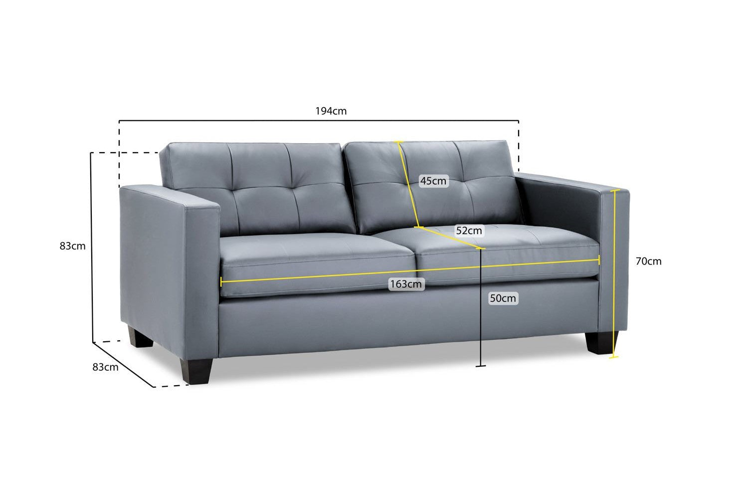The Jerry 3 Seater in Grey features an almost simplistic design, with a boxy shape contrasted with soft plump cushions. Smooth faux leather and chunky wooden feet make this sofa an excellent choice for any style of interior.