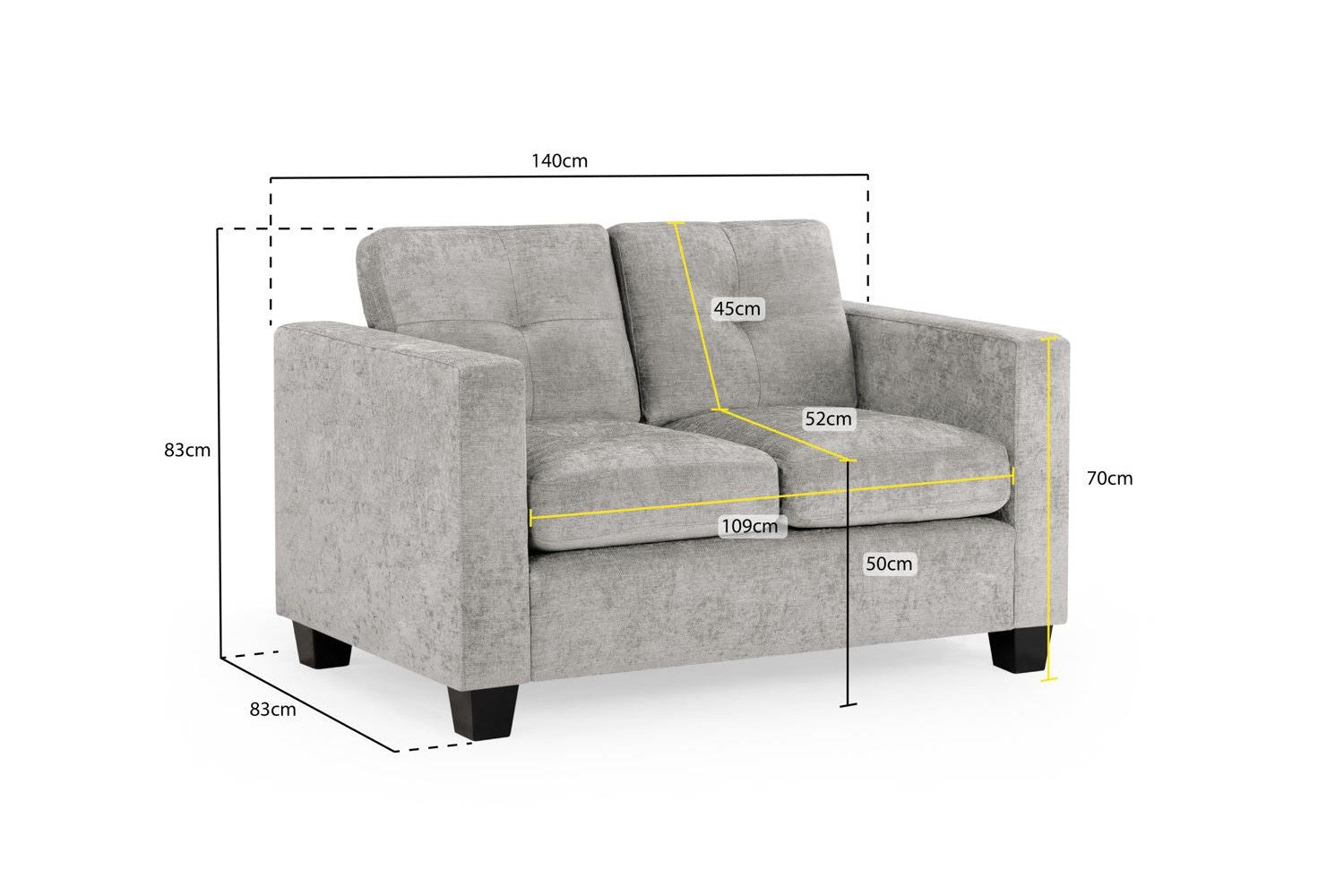 Jerry Sofa Grey Fabric 2 Seater