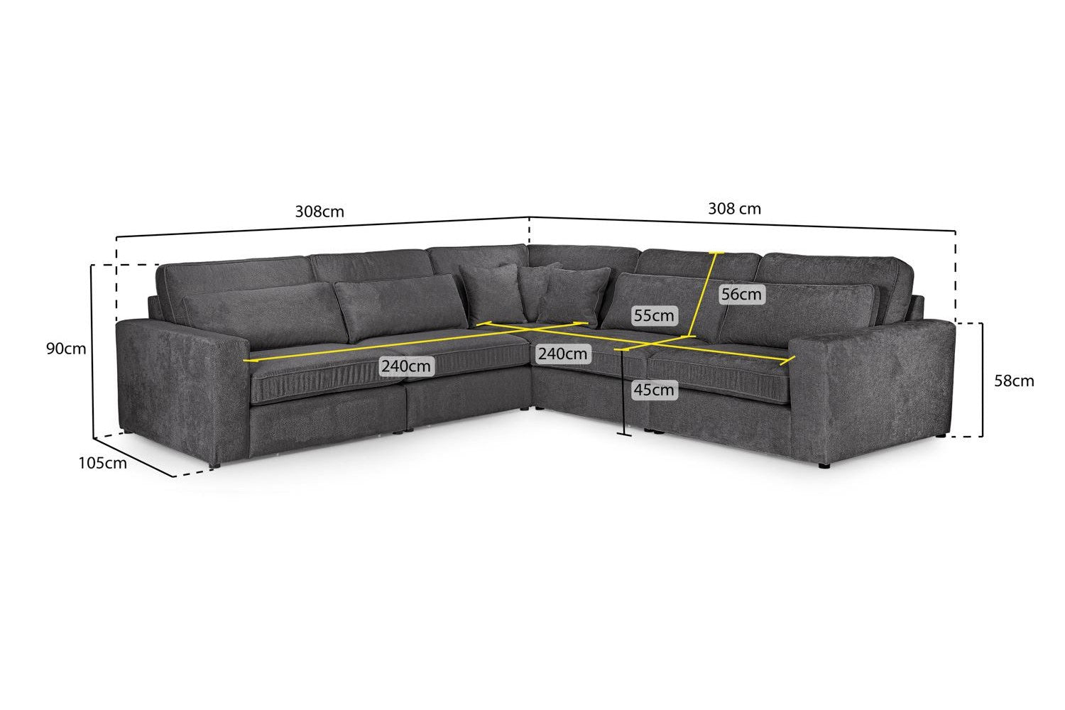 Introducing the Grey Kiana Modular Corner Sofa: cosy, comfy and crafted to last. The Kiana’s modular sofa structure offers absolute design freedom. Fancy changing things up a bit? Manoeuvre the layout of the modules to craft the perfect sofa for your lifestyle, allowing you to recreate your space at a whim and without hassle. Durability doesn’t have to mean compromise on comfort, especially not with the Kiana. Soft-touch chenille upholstery presents the best of both worlds; the tightly woven yarn is strong enough to withstand the trials and tribulations of day-to-day life- but still retains a soft, cloud-like disposition to relax on. The Kiana comes adorned with cosy cushions. Non-slip panels back the Kiana’s (removable) cushions covers to keep your sofa looking immaculate, while extra comfort cushions are scattered across each module - absolute bliss.