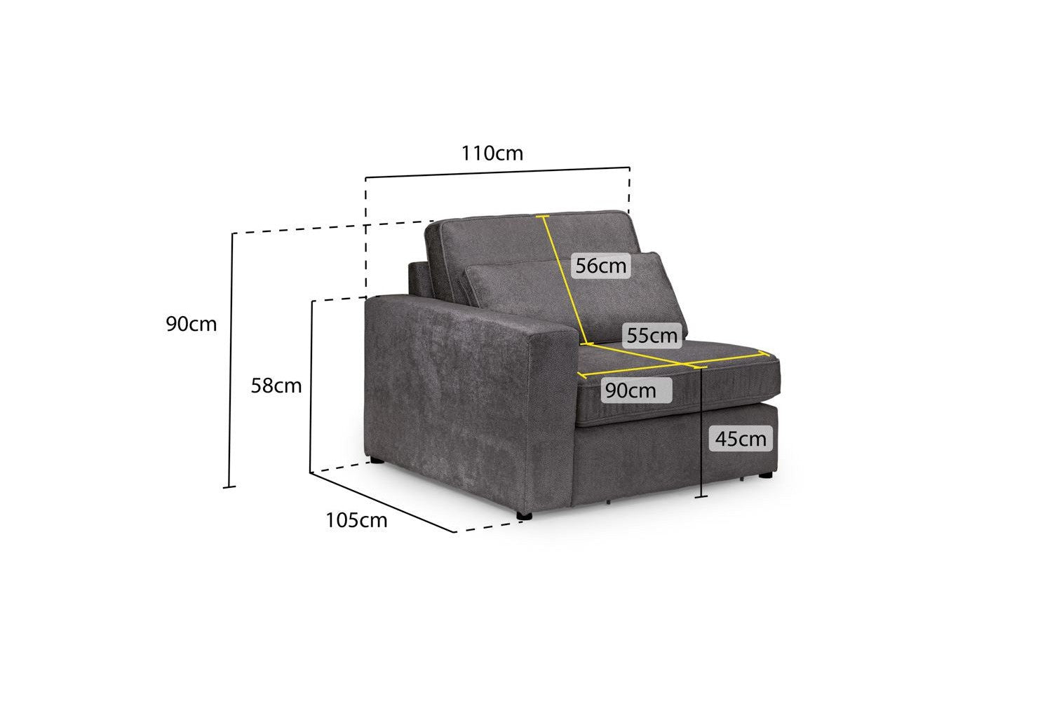 Kiana Modular Sofa Grey Left Hand Arm Piece