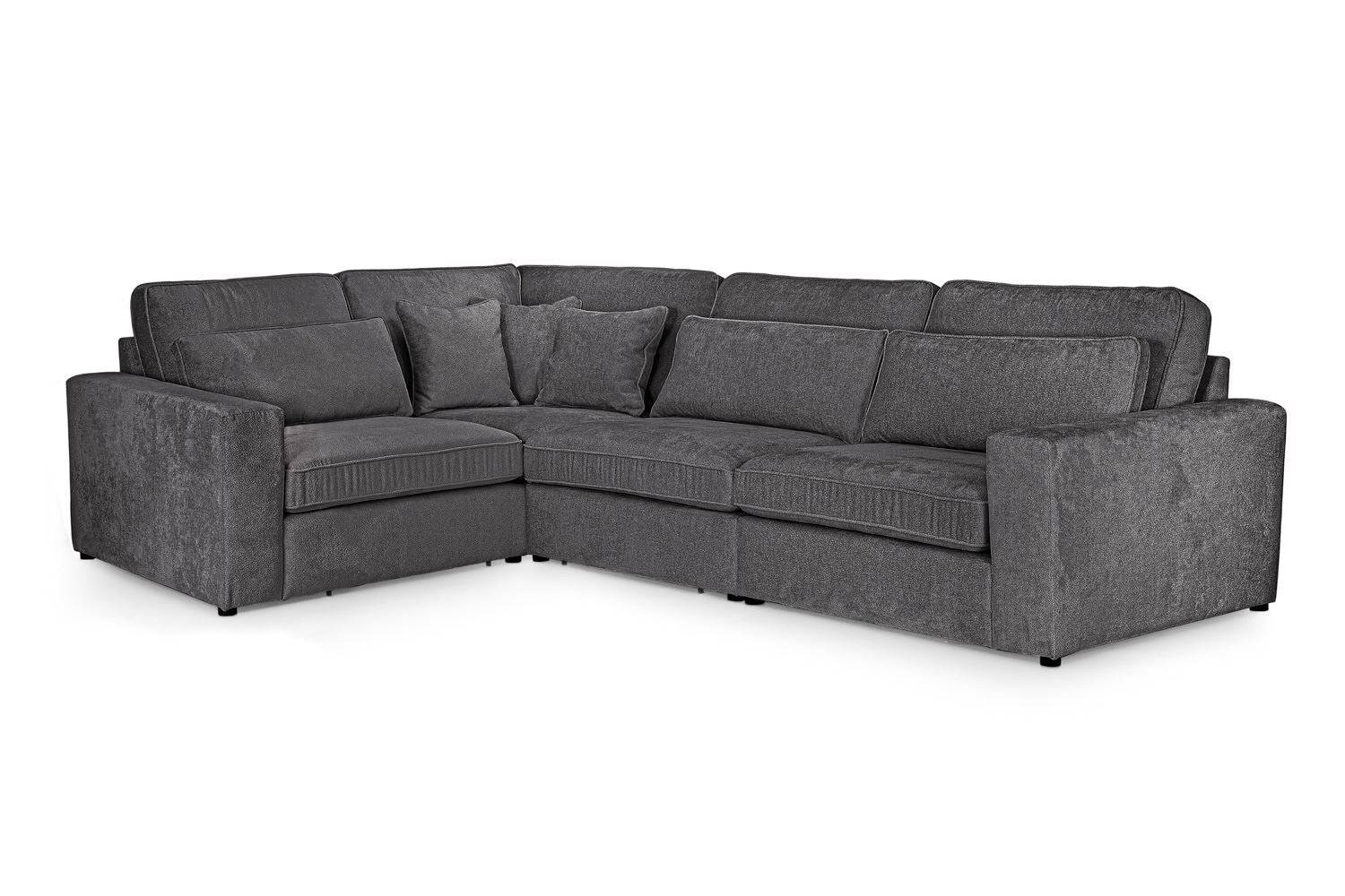 Introducing the Grey Kiana Modular Corner Sofa: cosy, comfy and crafted to last. The Kiana’s modular sofa structure offers absolute design freedom. Fancy changing things up a bit? Manoeuvre the layout of the modules to craft the perfect sofa for your lifestyle, allowing you to recreate your space at a whim and without hassle. Durability doesn’t have to mean compromise on comfort, especially not with the Kiana. Soft-touch chenille upholstery presents the best of both worlds; the tightly woven yarn is strong enough to withstand the trials and tribulations of day-to-day life- but still retains a soft, cloud-like disposition to relax on. The Kiana comes adorned with cosy cushions. Non-slip panels back the Kiana’s (removable) cushions covers to keep your sofa looking immaculate, while extra comfort cushions are scattered across each module - absolute bliss.