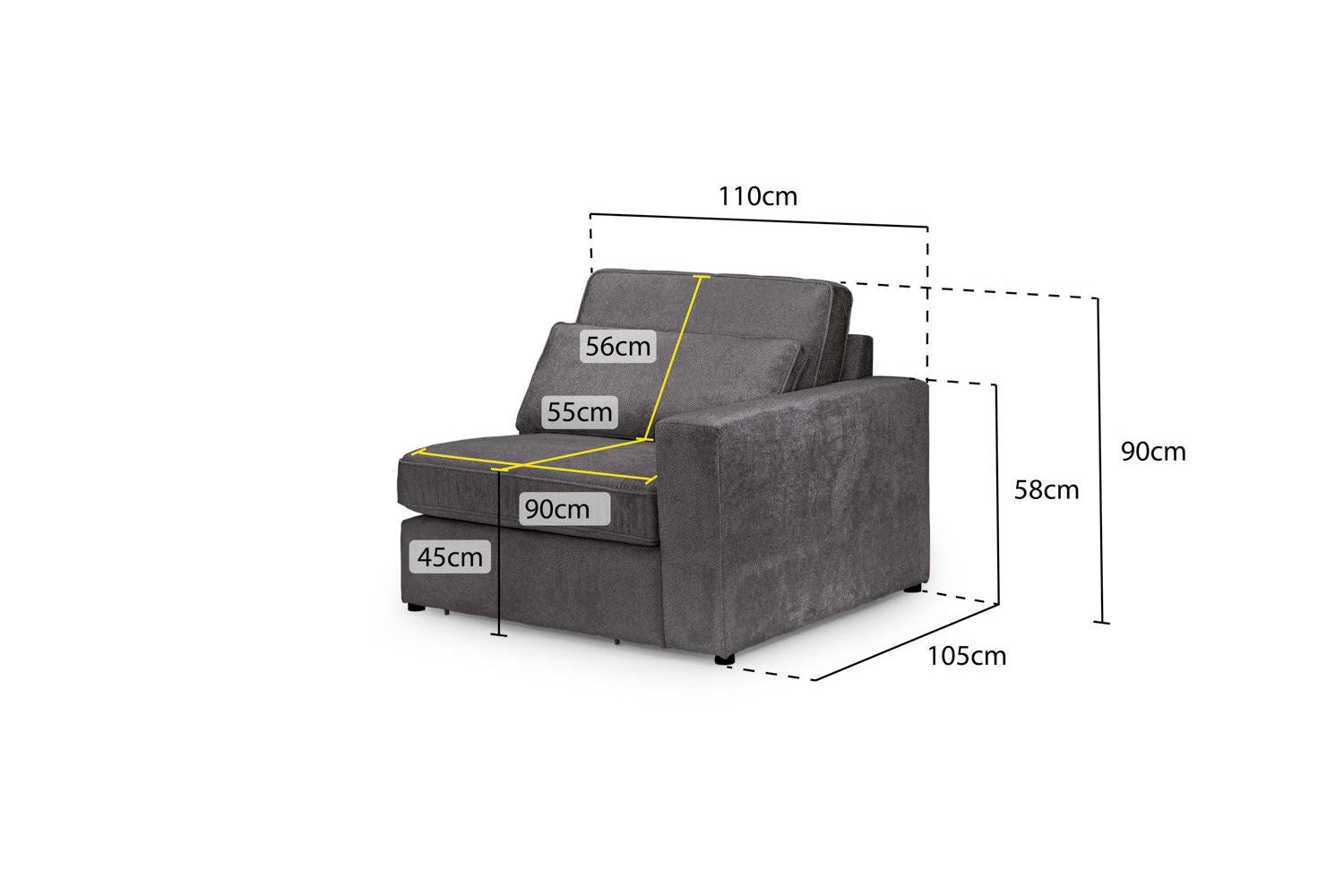 Introducing the Mocha Kiana Modular Corner Sofa: cosy, comfy and crafted to last. Module: Mocha, Right Arm The Kiana’s modular sofa structure offers absolute design freedom. Fancy changing things up a bit? Manoeuvre the layout of the modules to craft the perfect sofa for your lifestyle, allowing you to recreate your space at a whim and without hassle. Durability doesn’t have to mean compromise on comfort, especially not with the Kiana. Soft-touch chenille upholstery presents the best of both worlds; the tightly woven yarn is strong enough to withstand the trials and tribulations of day-to-day life- but still retains a soft, cloud-like disposition to relax on. The Kiana comes adorned with cosy cushions. Non-slip panels back the Kiana’s (removable) cushions covers to keep your sofa looking immaculate, while extra comfort cushions are scattered across each module - absolute bliss.