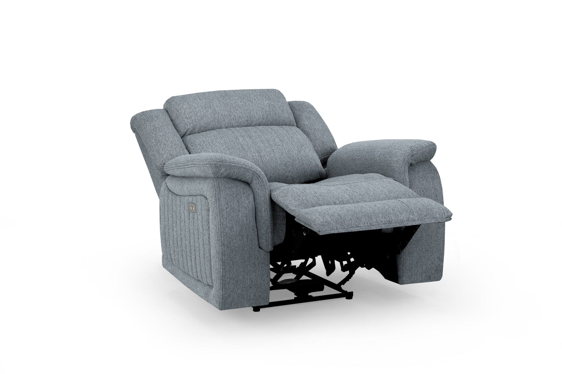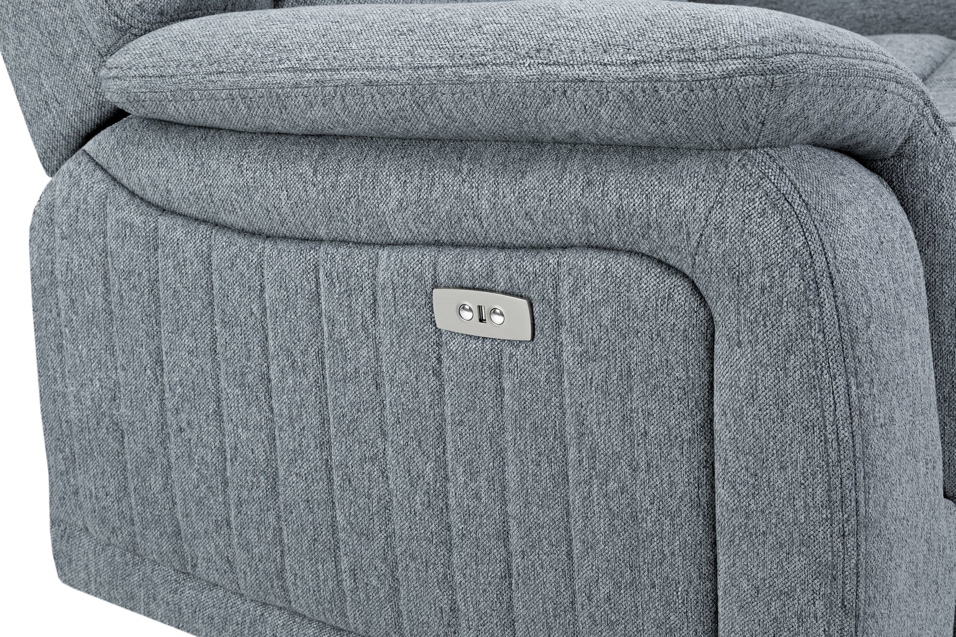 Cosy corner, redefined. Indulge in solo bliss with this plush retreat. Luxurious fabric, pillow-top armrests, and a smooth electric Linden recliner grey armchair invite you to unwind and recharge. Your perfect reading nook awaits.