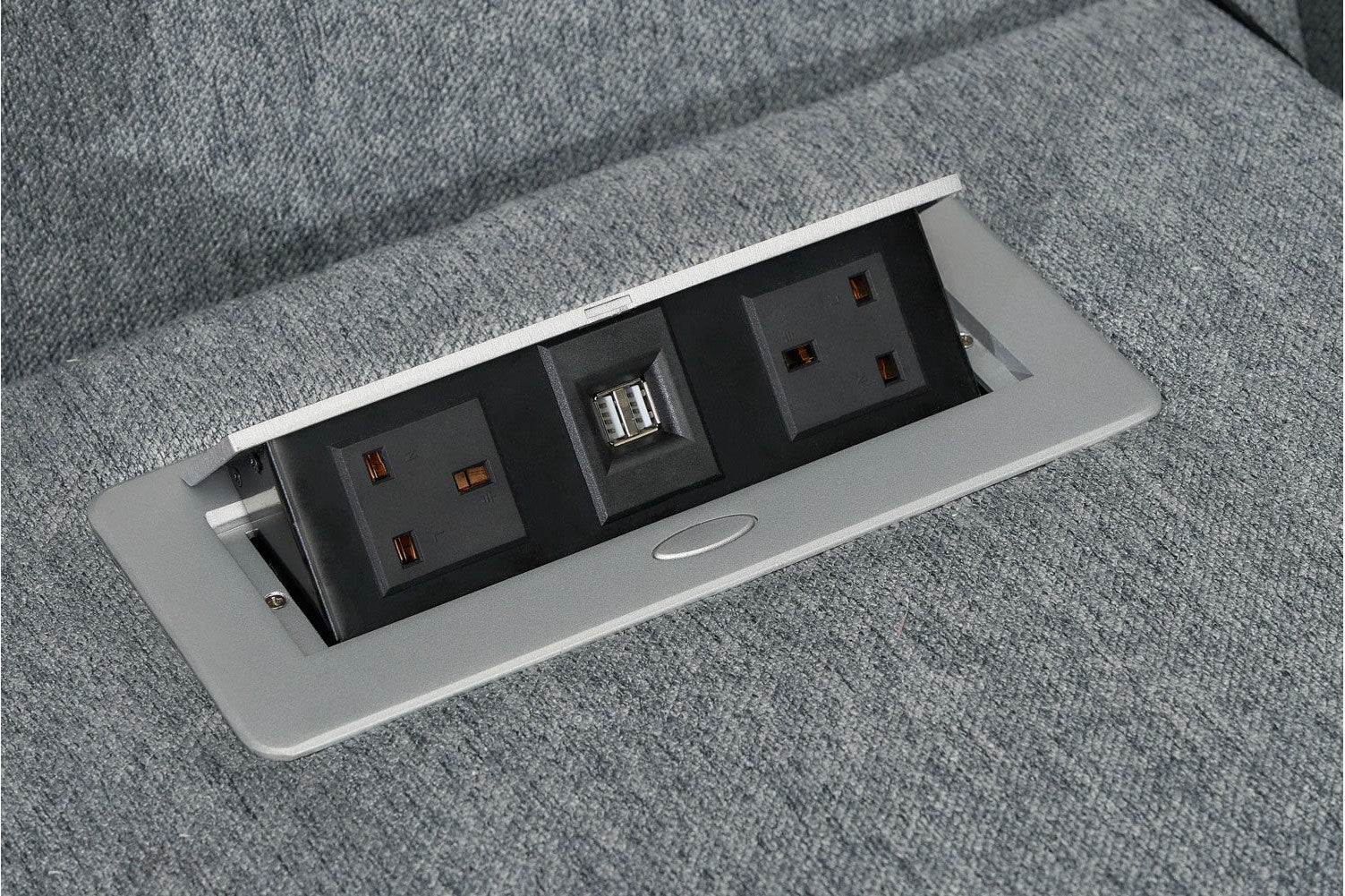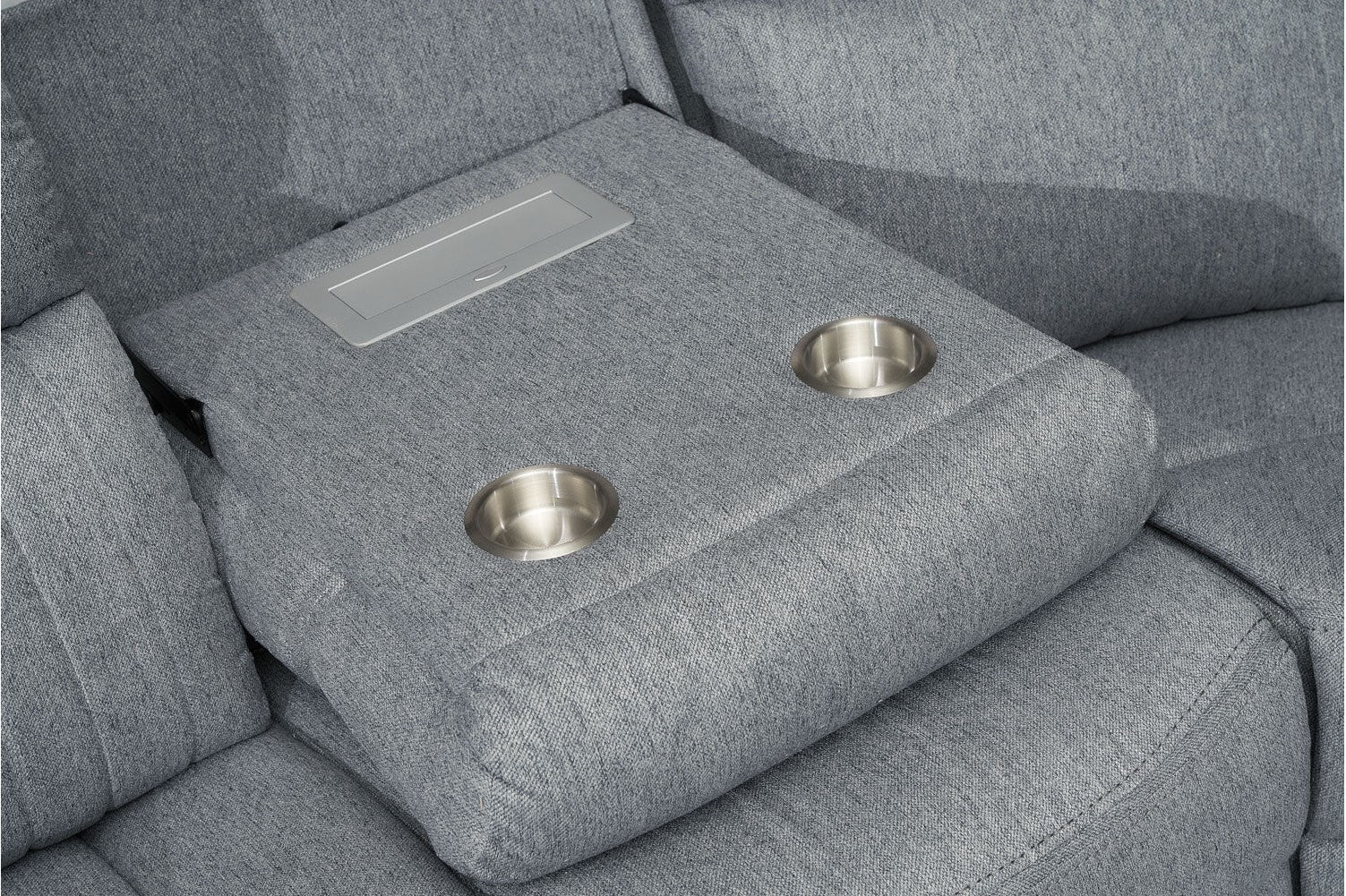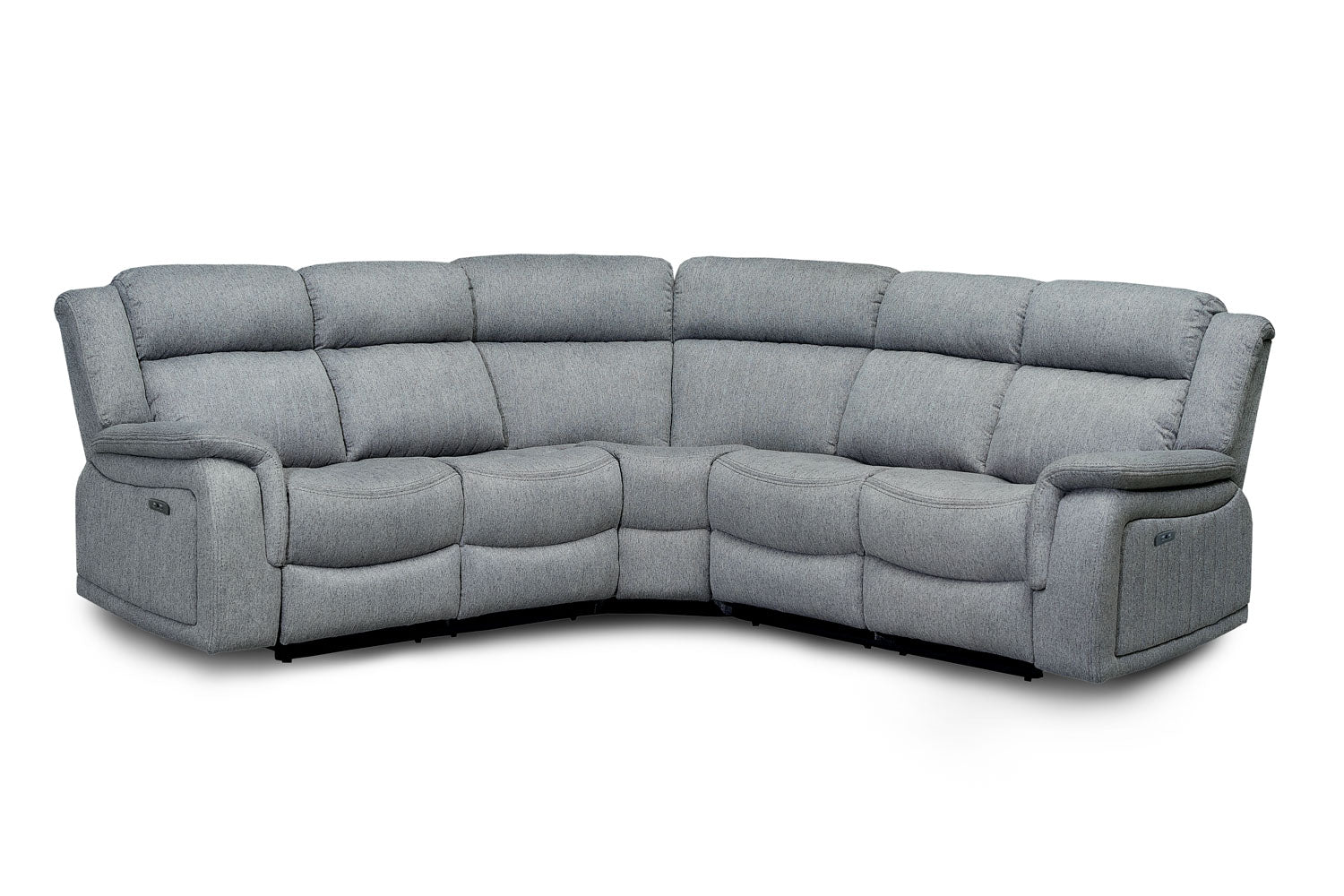 Gather in spacious comfort! The Linden electric recliner grey large corner welcomes the whole crew. Luxurious fabric, pillow-top armrests, and effortless electric recliners make every seat an oasis of relaxation.