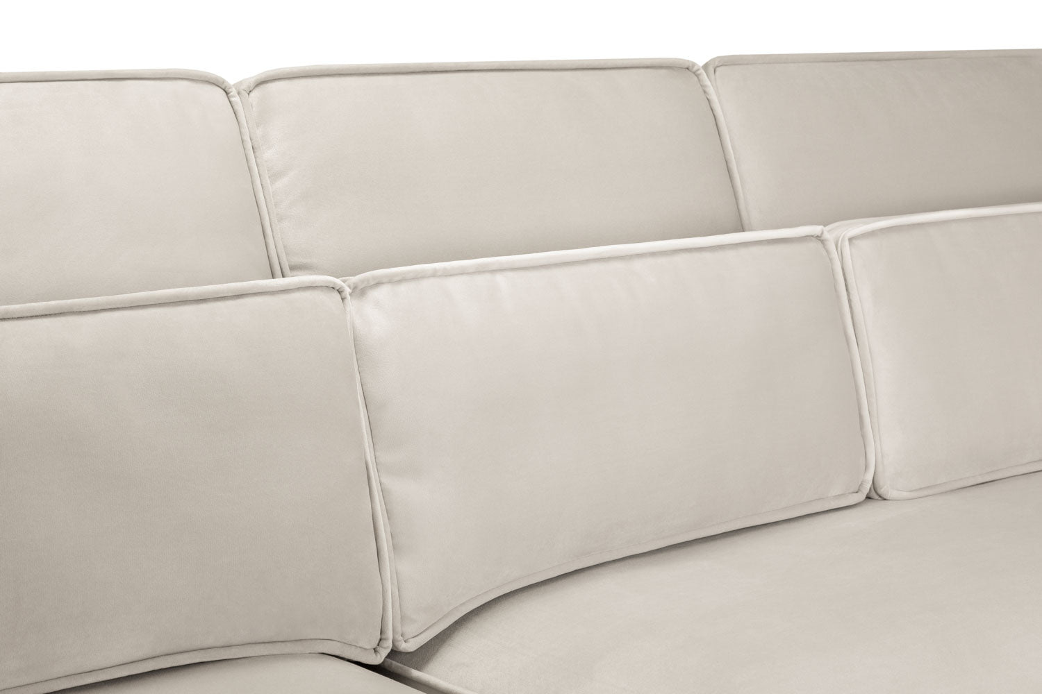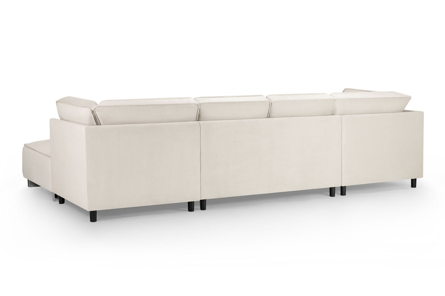 Crafted for best in comfort, the Sloane U-shape sofa in plush cream features luxurious foam-filled seat cushions and a deep, inviting seat for unparallelled comfort. Indulge in plushness with bolsters, all framed by solid wood for lasting comfort.