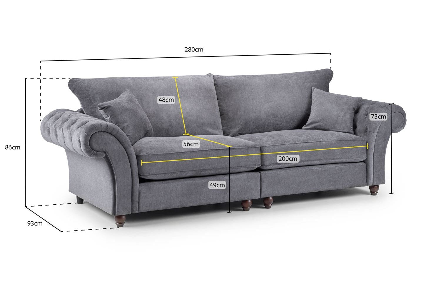 With soft polyester upholstery and luxury foam cushions, The Windsor is as comfortable as it is stylish. The rounded, buttoned arms give the range an elegant, classic look, however The Windsor is perfectly suited to any modern living space. The Windsor grey, four seater sofa is one of our most popular sofas!